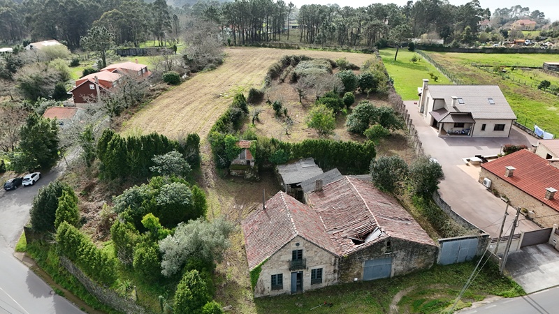 Oportunidad única en Lugar As Cortes – Rianxo, ideal por su amplitud y ubicación. La propiedad cuenta con más de 8.000 m² de finca, de los cuales 2.700 m² se encuentran en suelo urbano, lo que incrementa notablemente sus posibilidades.